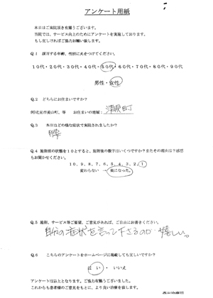 申し訳ありません。当院は院長の私一人で行っていることをご了承ください。施術に関しましては、腰が張っている場合、臀部は触れることがありますが、必ず一言断ってからにします。嫌ならハッキリとNoと言ってください。足は施術上、どうしても触れることになります。ご不安な方は一度お問い合わせ下さい。ご納得の上、ご来院していただきたいと思っております。