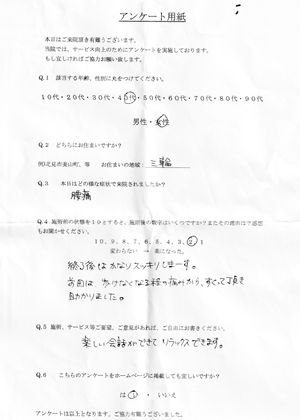 基本、初診は簡単な問診があるので80分~90分ですが年齢、体質、コースにより異なります。
